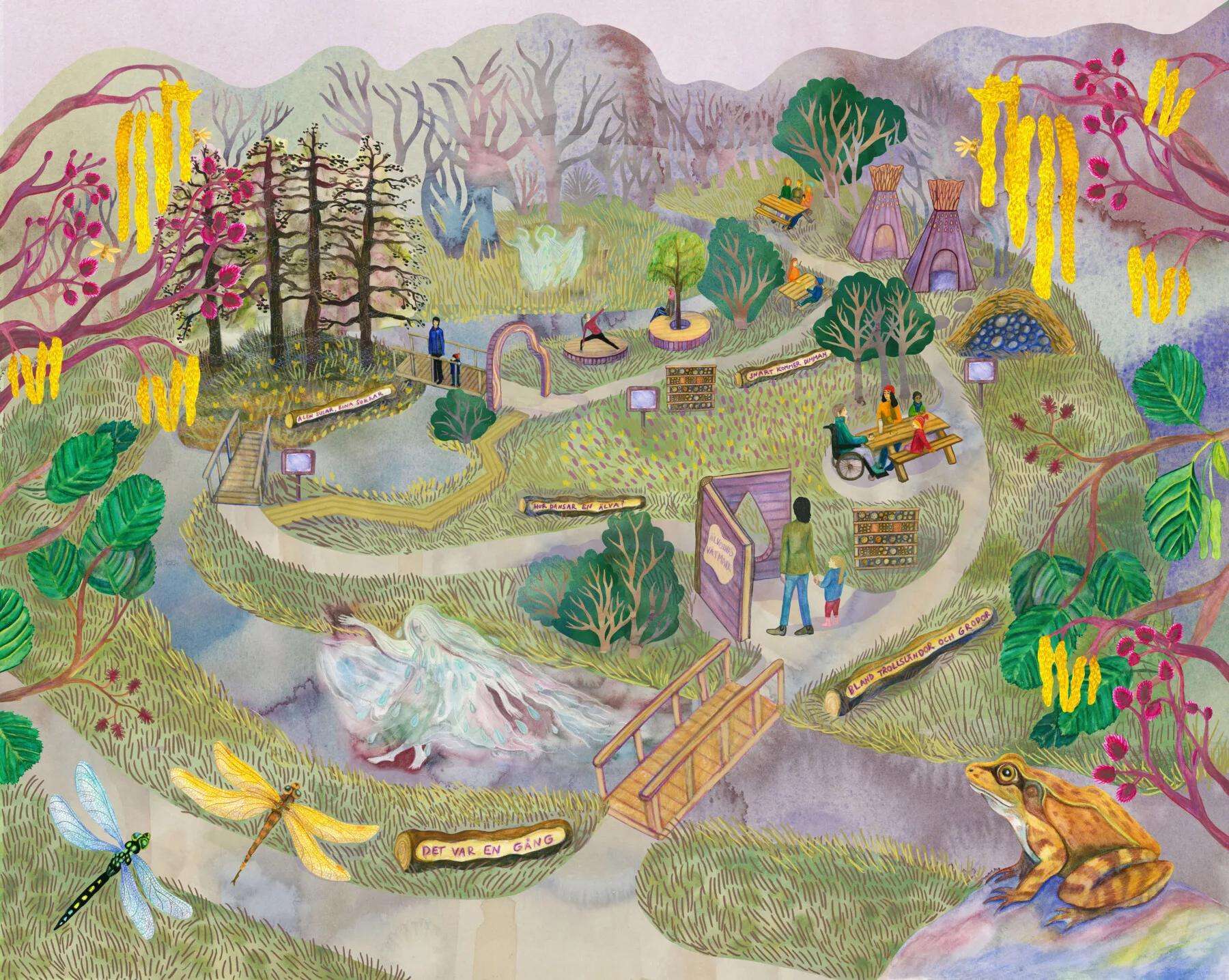 Med älvorna som inspirationen har Landskapslaget jobbat med konceptutveckling, illustrationer, texter och gestaltning av lekhus och skyltar till den våtmark som ligger vid Fregattbacken i Trollsjöns Naturreservat i Nacka. Det är ett av flera projekt där Nacka Kommun arbetat med att återskapa våtmarker.