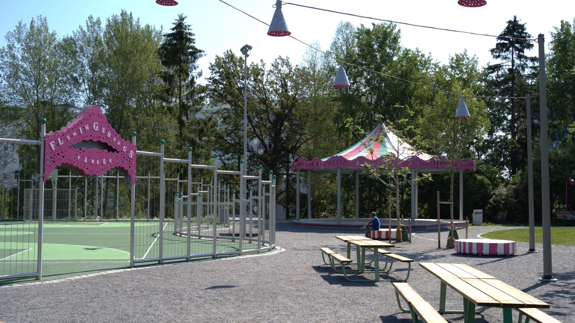 Den nya stadsdelsparken i Flemingsberg är en ny tids folkpark. När man inte har plats hemma ska man kunna umgås, leka och ha kalas i parken.