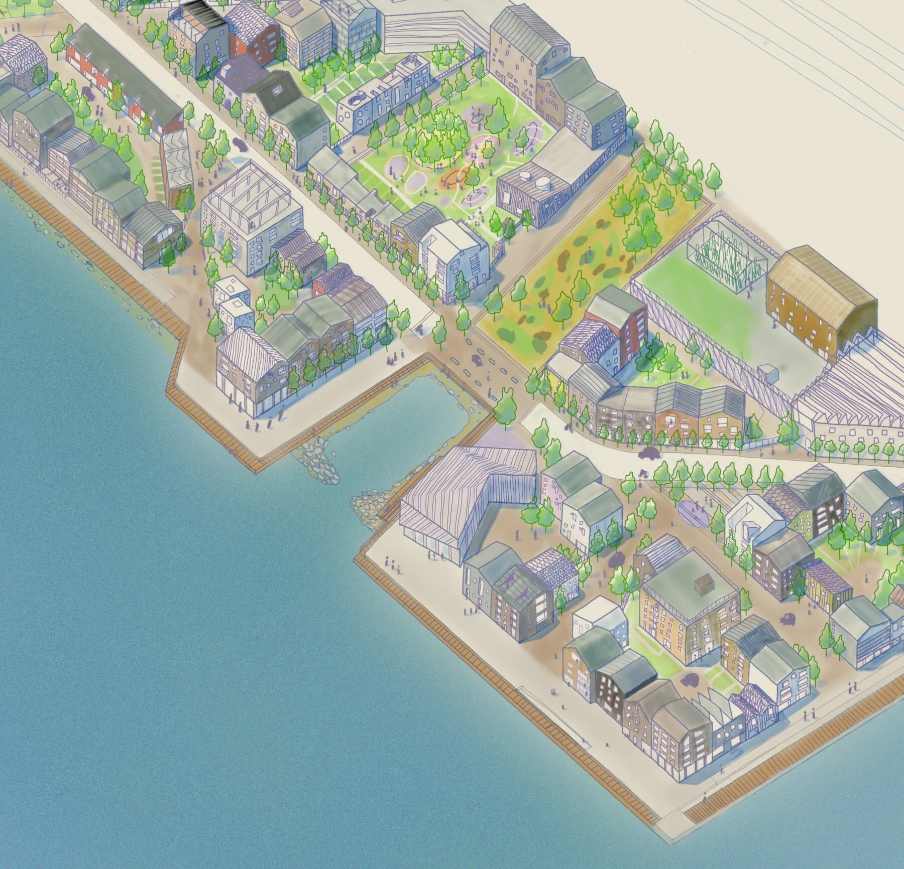Kattvikskajen i centrala Hudiksvall omvandlas från timmerhantering till en stadsdel med 500 bostäder, kontor, service, hotell, förskola samt parker, torg och kajpromenad.